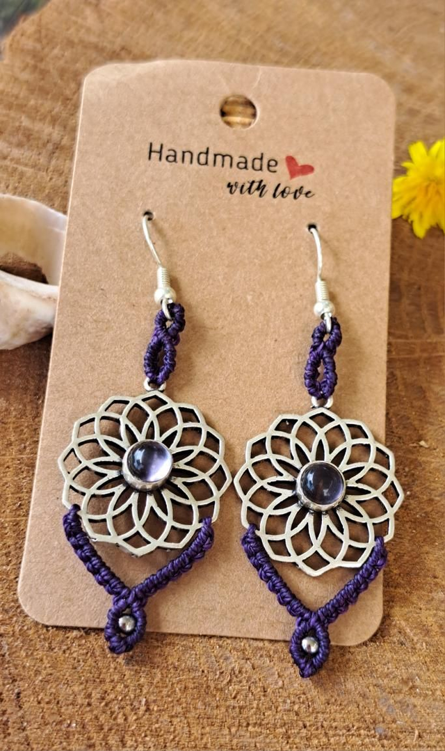 Très jolies boucles d'oreilles en forme de fleur avec pierre naturelle amethyste