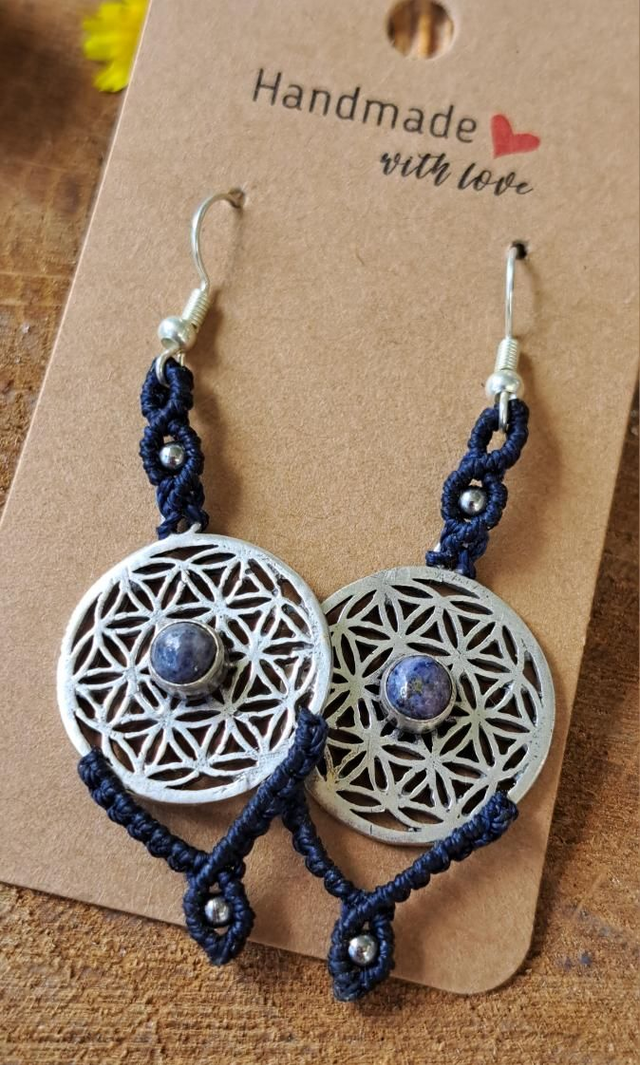 Boucles d'oreilles micro-macramé fleur de vie