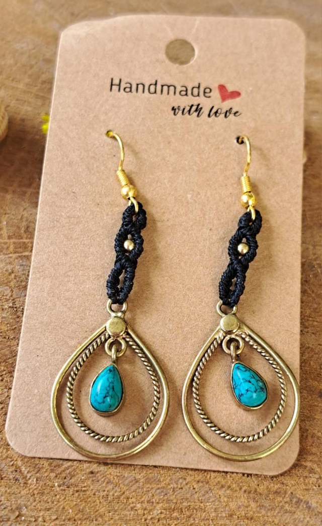 Très jolies boucles d'oreilles en forme de goutte avec pierre naturelle turquoise