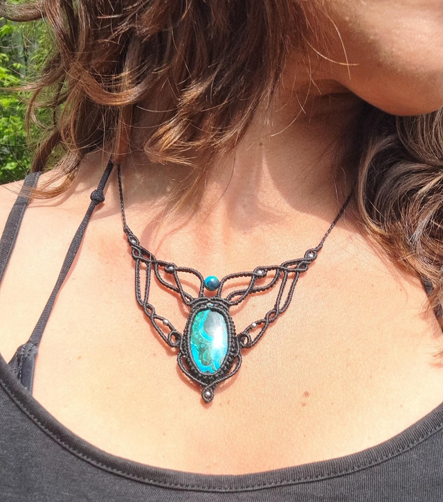 Magnifique collier avec une pierre naturelle Malachite Chrysocolle