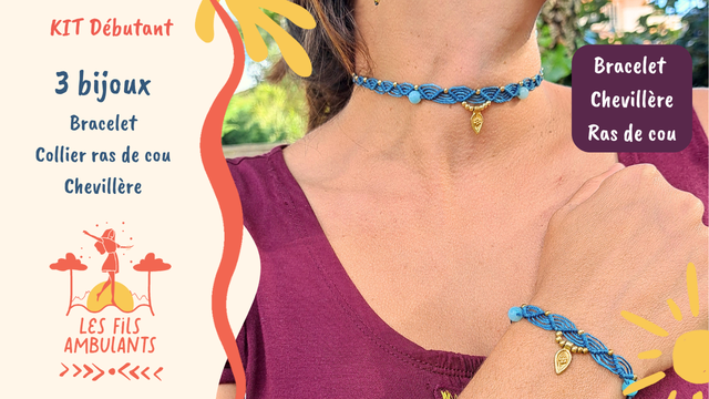 Kit 3 bijoux Débutant micro-macramé - Bijoux avec breloque indienne