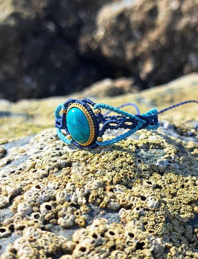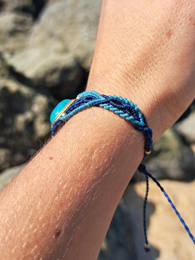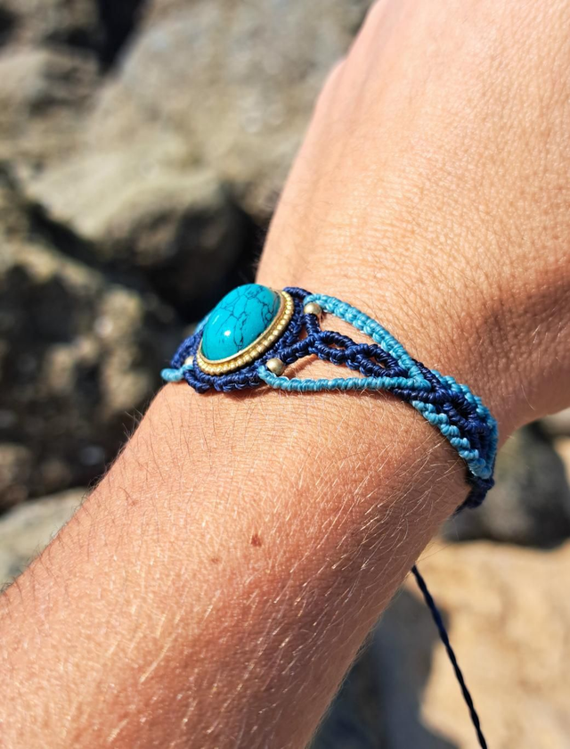 Très belle manchette en micro-macramé avec pierre naturelle turquoise
