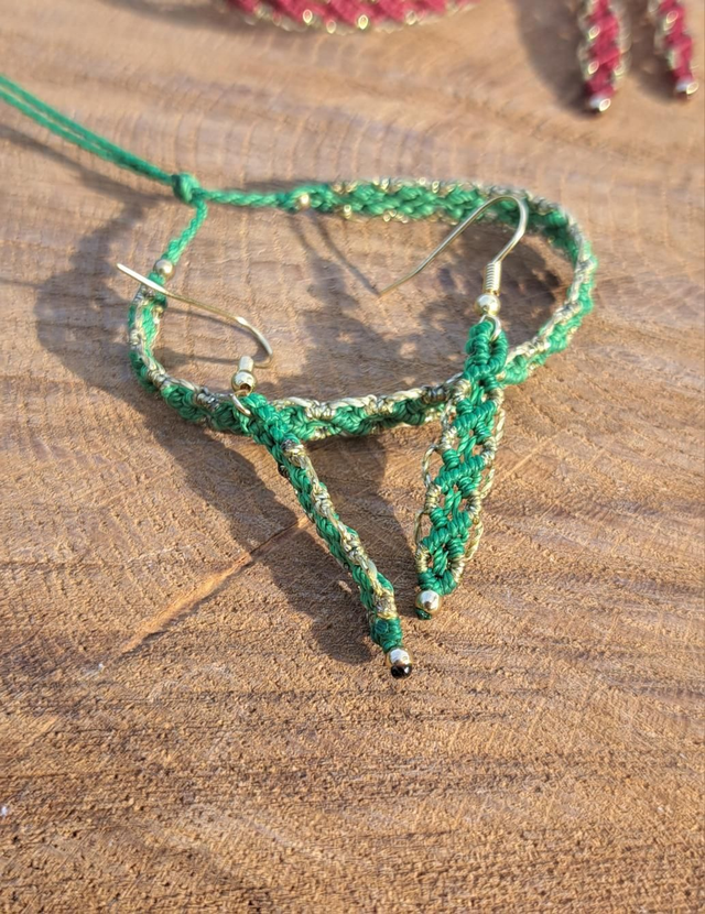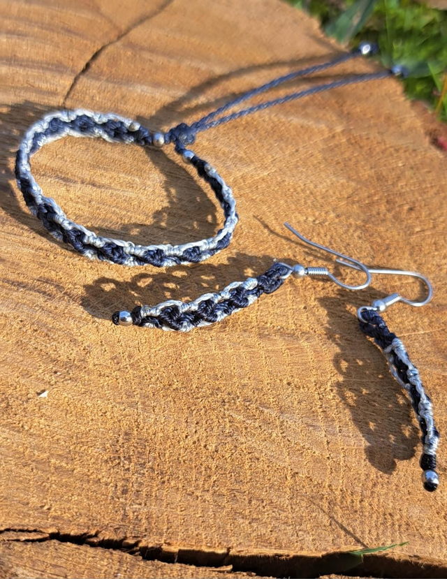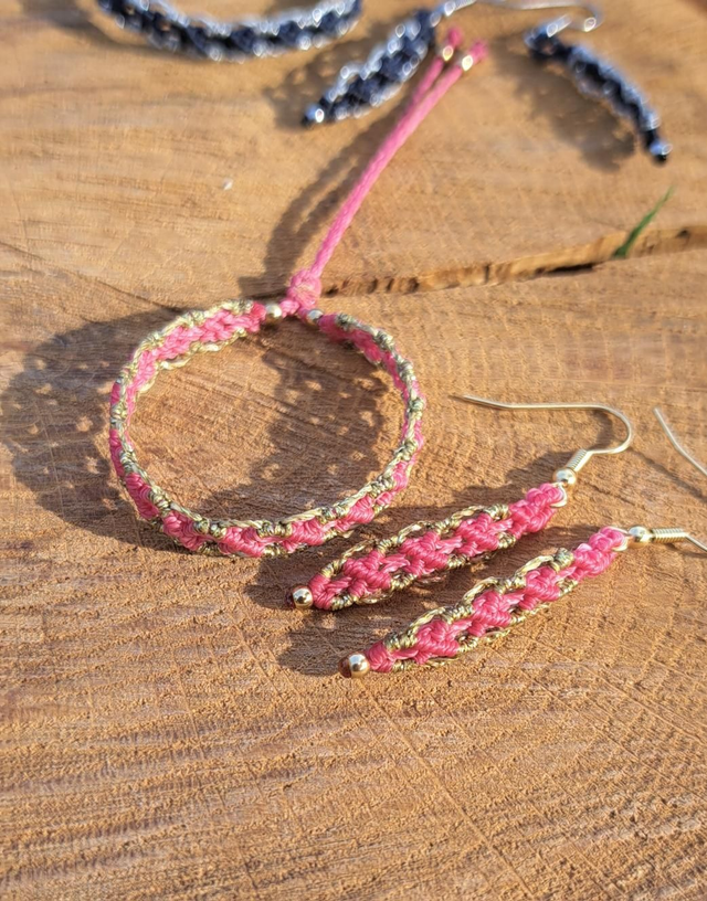 Ensemble BRACELET ET BOUCLES D'OREILLES en micro-macramé