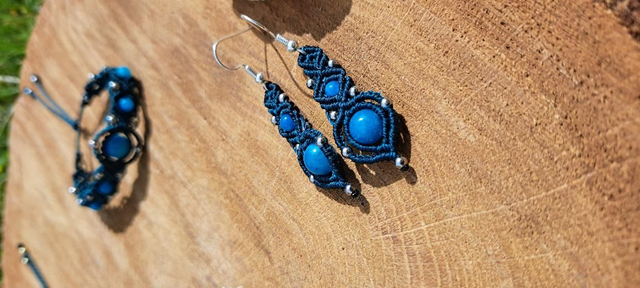 Boucles d'oreilles et bracelet tissés à la main